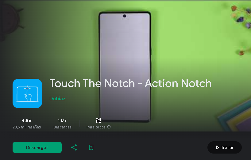 Es una aplicación que te permite configurar acciones rápidas tocando la muesca (la zona donde se encuentra la cámara frontal) de tu teléfono. Puede parecer simple, pero una vez que empieces a usarla, te darás cuenta de cuánto te ahorra tiempo y te facilita la vida.